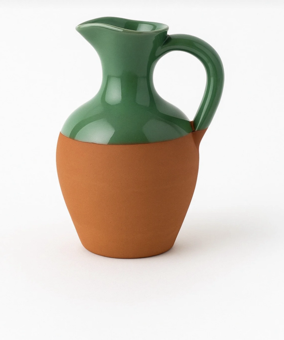 El yapımı Seramik Sürahi-Dekoratif&Yesil ve Toprak Renkli