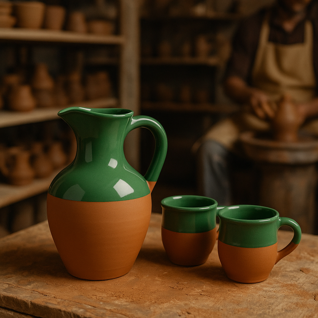 ✔️üstü parlak yeşil sırlı bu şık testinin alt kısmı doğal toprak dokusunu korur.